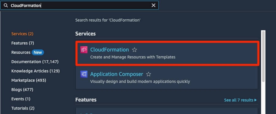 Step 2: On your AWS Console, navigate to CloudFormation and select Create stack.